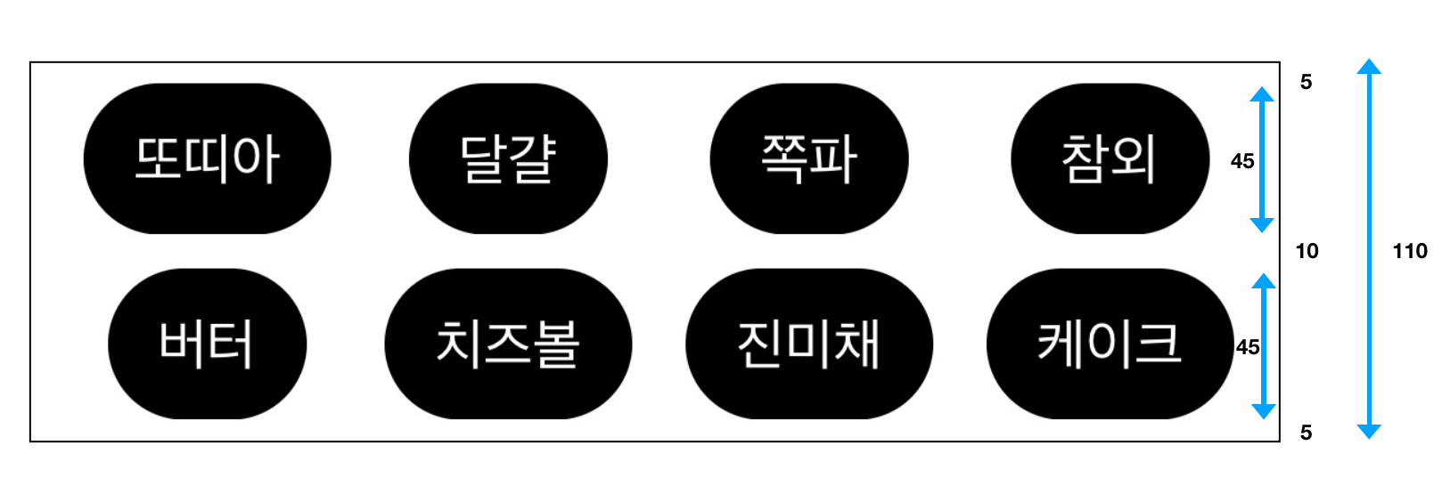 소수점 단위의 계산 오차로 인하여 실제 원하는 높이보다 살짝 큰 사이즈가 되었으며,