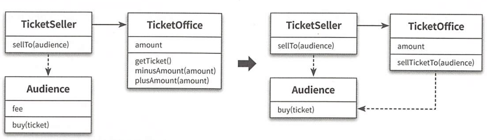 해결 방법은 간단하다. Theater가 Audience와 TicketSeller에 관해 너무 세세한 부분까지 알지 못하도록 정보를 차단하면 된다!