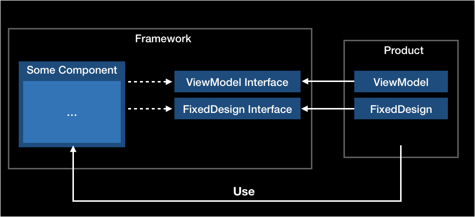프로덕트에서는 컴포넌트에 필요한 ViewModel, FixedDesign을 주입하여 컴포넌트를 사용하는 방식입니다.