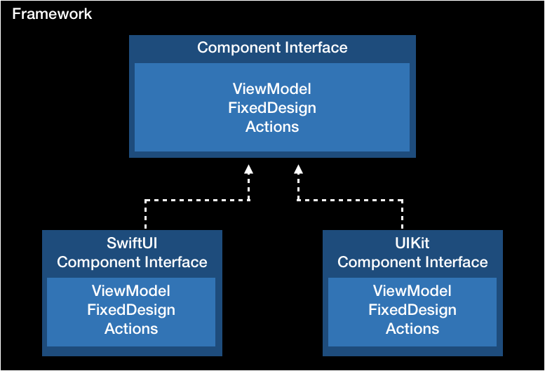 UIKit, SwiftUI 상관없이 Component Interface 기반이기 때문에 ViewModel, FixedDesign, Actions가 필요한 것은 동일합니다.