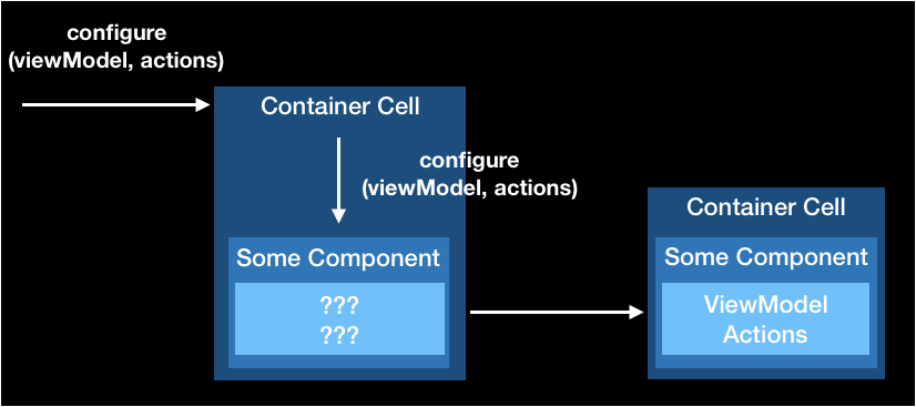 외부에서 Container Cell을 구성하라는 메시지를 보내게 되면, 이를 하위 요소인 컴포넌트에 그대로 전달하여 전체 Cell을 구성하는 형태입니다.