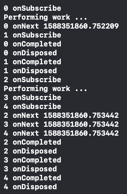 0번과 1번을 먼저 살펴보면, 0번이 구독을 한 시점부터, shareResult는 시퀀스를 생성하게 됩니다. 따라서 0번은 이벤트를 받는다는 보장을 할 수 있습니다.